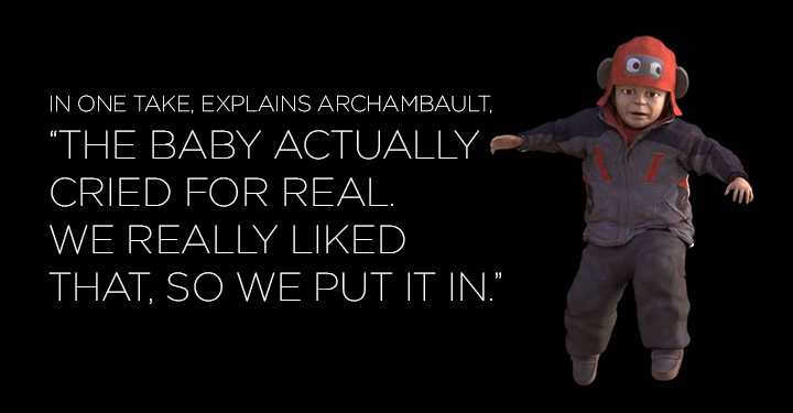 The crew spent two hours filming four or five takes in the park. In one, explains Archambault, "the baby actually cried for real. We really liked that, so we put it in."