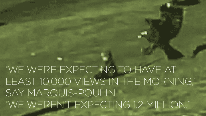 "I still don't understand how it went that big," says Marquis-Poulin, 23. "I go from step one to the final result. I see all the work we did. I can't comprehend somebody on their phone, watching the video, saying, 'Look at this! An eagle catches a baby! That's awesome.' I can't imagine how many people had this moment. It's weird."