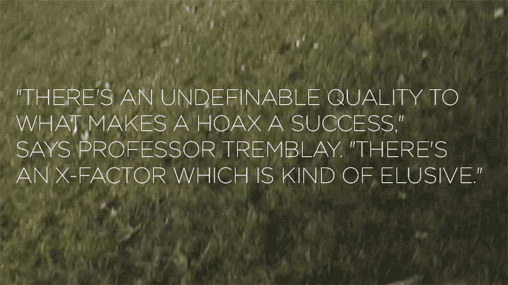 More than 1 million people had seen the original video by the morning of Dec. 19. Everyone, from Professor Tremblay to the students, couldn't quite believe it. Being that kind of success was a crapshoot, believes Tremblay. "There's a lot of things we can't control. You can do the best thing," have the best and slickest 3-D effects, "but you need the spark," he says, when 72 hours worth of video are uploaded to YouTube each minute. "There's an undefinable quality to what makes a hoax a success. There's an X factor, which is kind of elusive."