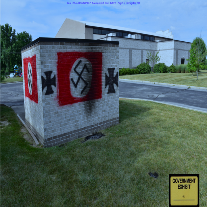 In July 2018, Brewer and his then-17-year-old wife, Kiyomi Brewer, drove 50 miles from their home to the synagogue, spray-painted a Nazi flag and iron crosses on a dumpster enclosure, and lit a fire on the ground. Prosecutors said they originally planned to break into the synagogue and destroy it with homemade bombs and napalm they brought along, but they got scared.