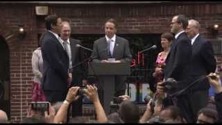 The ceremony took place outside the Stonewall Inn, where in 1969 gay men rose up against a police raid and the modern LGBT rights movement was born.