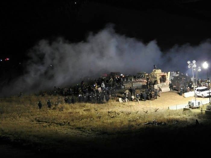 About 400 protesters stood facing law enforcement at Highway 1806, near the camps where they have worked to block the pipeline for months. Video from the scene captured streams of water spraying into the crowd, which the local sheriff's department described as an "ongoing riot," and sounds of shouting. People at the scene also said on social media that they had been teargassed and fired upon with rubber bullets.