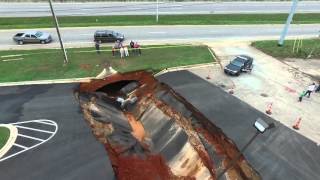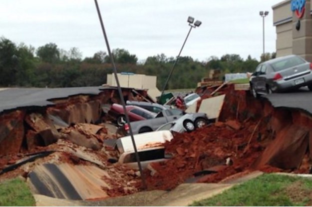 According to multiple local news reports, witnesses heard a loud boom before the earth beneath the newly constructed parking lot opened up pulling the cars into the hole.