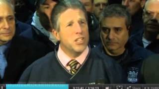 During a news conference Saturday night, Lynch said that "blood on the hands starts on the steps of City Hall in the office of the mayor." He also said there was blood on the hands of "those that incited violence on the street under the guise of protest that tried to tear down what New York City police officers did every day."