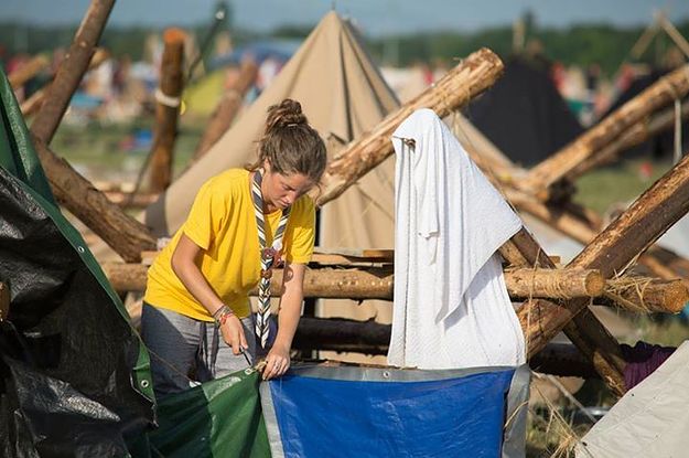 On Facebook, the scouting group shared photos of teens returning to the devastated campsite later on Saturday to put their scouting skills to work in rebuilding their tents.