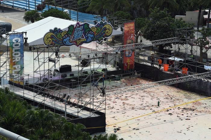 Colored powder was being sprayed onto a crowd during a performance at the Formosa Fun Coast when it suddenly ignited, a spokesperson for the local fire service told the BBC.