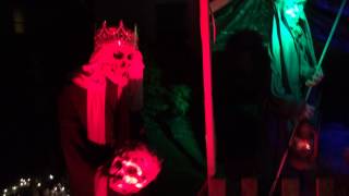At night, the display is illuminated with various colors, while haunting, slowed-down versions of Christmas carols play.