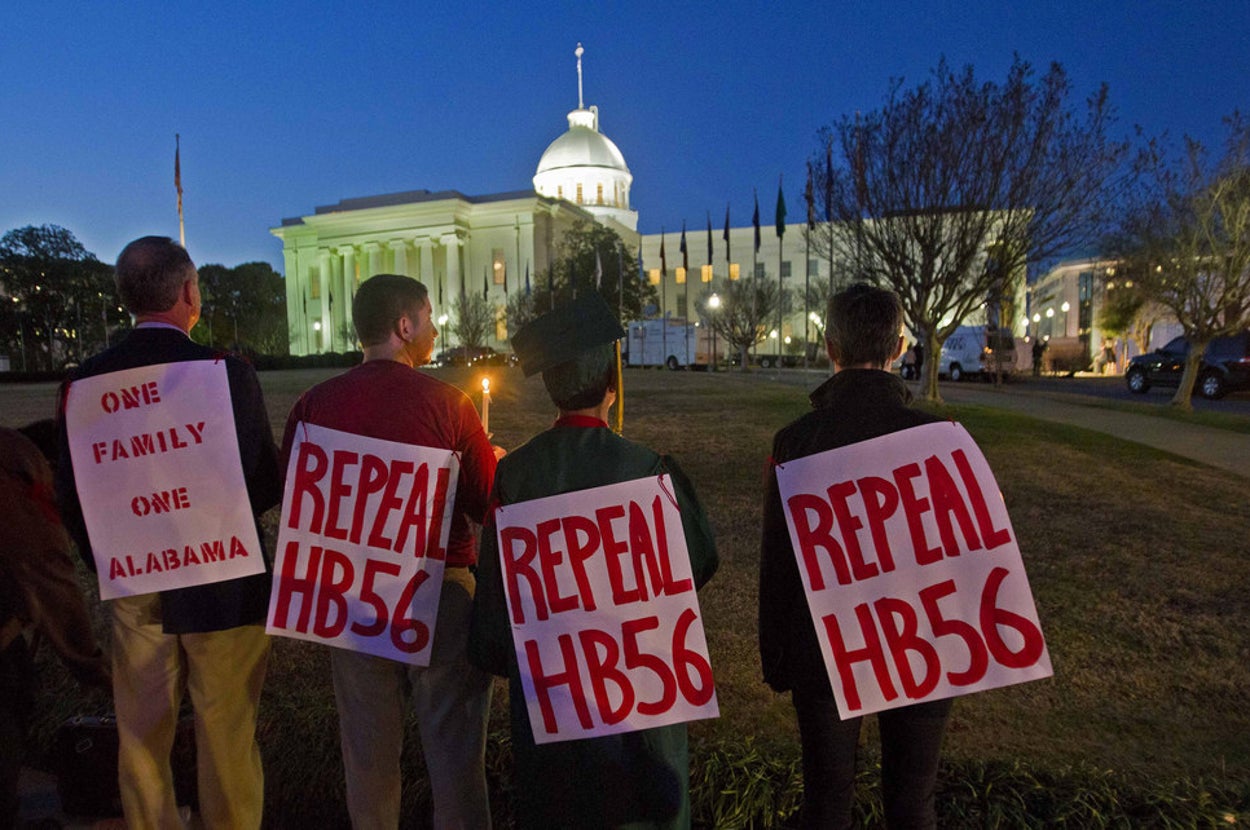 Alabama's law, known as HB 56, passed in 2011, and was the most extreme in a wave of state legislation across the country designed to punish undocumented immigrants in as many ways as possible. Since then the law has been steadily unraveling, with most of its major provisions either blocked by courts or dropped by the state itself. The "scarlet letter" provision is the last to fall.
