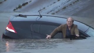 One man was rescued on live television by a reporter covering the flooding.
