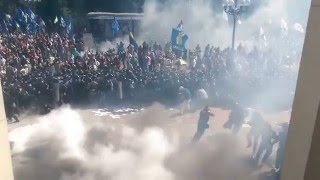 Clashes erupted after nationalist protesters gathered outside the Rada parliament building during a vote where lawmakers gave their preliminary backing to greater autonomy for the nation's restive east — a key part of the Minsk agreement signed in February.