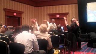 Two guys in colonial wigs and track suits doing a patriotic rap called "Mr. America." That's Fox News contributor Steve Crowder and Chris Loesch, aka Mr. Dana Loesch, getting hands waving in a half-full convention room at the Conservative Political Action Conference. Keep an eye out for the woman shaking her fanny pack at 1:17 and the black guy who walks out at 1:54.