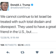 And then there's Trump, who used Twitter several times in the days after the vote to lash out at the UN and call for a more robust defense of Israel.