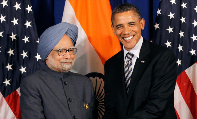 Obama and Rouhani have never met, however. The photograph was created from a image of Obama meeting with Indian Prime Minister Manmohan in 2011.