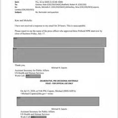 Caputo, who was HHS’s assistant secretary of public affairs for several months in 2020, warned employees that they would run afoul of written policies in the playbook for dealing with the press if they agreed to media interviews without his approval. "There are no exceptions," Caputo said in one July 2020 email. He then demanded to know how an HHS official's interview with NPR was approved and the identity of the press officer who had sanctioned it.