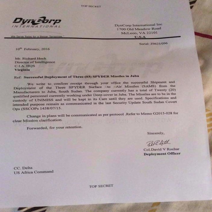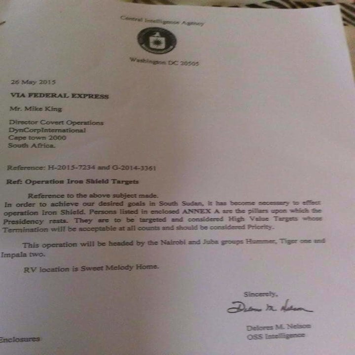 Days later, the Dawn, a Juba-based newspaper owned by government security operatives, which Majok told BuzzFeed News she has done some work for, published fake CIA documents purporting to reveal a US-backed plan to overthrow South Sudan's government. The documents alleged the US — often seen as aligned with the UN in South Sudan — was working in cahoots with military contractor DynCorp, whose staff lived in the Terrain compound which was attacked by government troops.