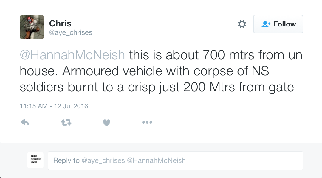 Two weeks after Atem’s original tweets, the National Courier cited South Sudan's ambassador to the UN, who alleged yet again that the UN killed government troops. South Sudan’s Mission to the UN did not respond to BuzzFeed News’ requests for comment.