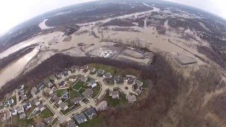 This drone video recorded Thursday shows how the Meramac River overflowed its banks and reached homes in Oakville.