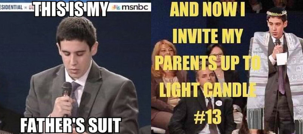 "Mr. President, Governor Romney, as a 20-year-old college student, all I hear from professors, neighbors and others is that when I graduate, I will have little chance to get employment," said Epstein, visibly nervous in that hunched-over suit. (Watching from their two-story home in the quiet suburb of Valley Stream, Long Island, Epstein's mother screamed in excitement the moment she saw the back of his head.)