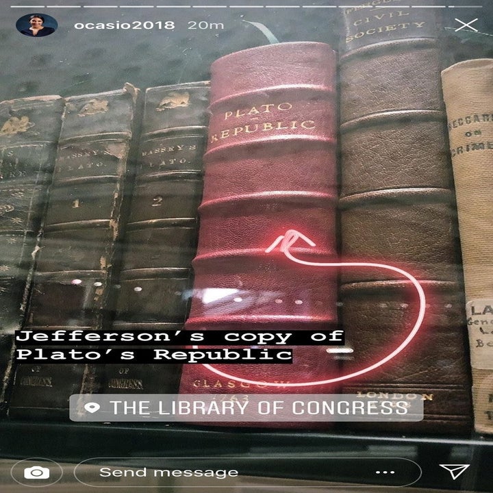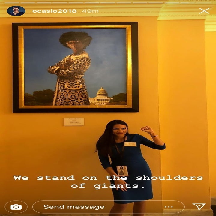 Over the last two weeks, her Instagram has been a primer in what they tell you and where they take you when you win a seat in Congress. If Cory Booker is pretty good at Instagram as far as politicians go, the vibe’s still sometimes like your Bible study leader is giving you a college campus tour. Ocasio-Cortez uses Instagram like the rest of us do — reflexively, incidentally, the way you would if you were inside the United States Capitol at night, commenting on stuff in front of you (Jefferson’s copy of Plato, the Hogwarts vibe, the bus ride back being like a high school field trip). Check out this photo of her posing with a portrait of Shirley Chisholm. She looks like a tourist! It’s not a cool pose or even a selfie; it looks like she asked someone to take this photo and is slightly embarrassed that she did.