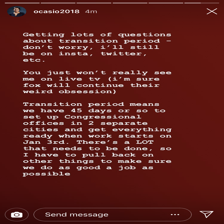 On Monday night, Alexandria Ocasio-Cortez mentioned on Instagram that she’d be going dark for a while to get ready for Congress in January, then — just minutes later, but long enough for the thought “What about the Instagram cooking lives?” to enter your mind — followed up to say: Don’t worry, I’ll still be on Instagram and Twitter.