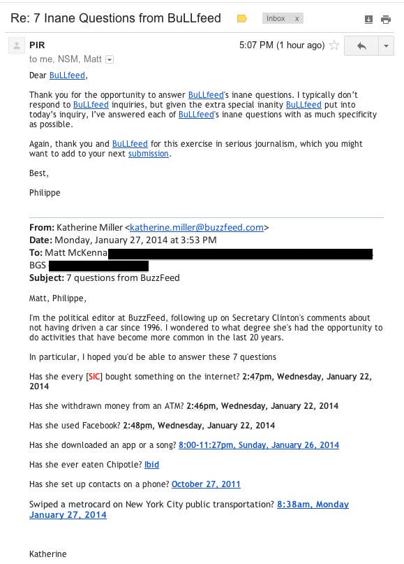 BuzzFeed asked Clinton spokesman Philippe Reines if Clinton has had the opportunity to do activities fairly commonplace in 2014. He provided the following response.