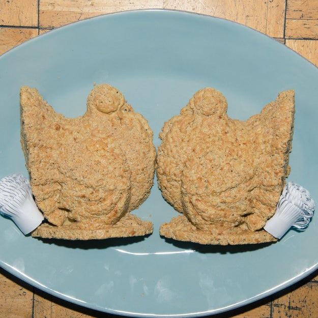 Thanksgiving has long been a battleground for vegetarians and their older relatives who are vexed by the refusal to consume dead turkey flesh. Tofurky has been around for almost 30 years, long enough to look hilariously outdated in its packaging. It’s old news. Beyond Meat is the hottest tech startup in fake meat, with Twitter co-founder Biz Stone and Silicon Valley venture capital firm Kleiner Perkins as investors, and the former McDonald’s CEO on its board. Beyond Meat’s appeal (other than that you can abbreviate it BM) is that its texture is supposedly more like real chicken than any other competitors, thanks to its specially developed cooking process. But Beyond Meat is sold in chicken strip pieces, which don’t really have the festive holiday appeal I was looking for.