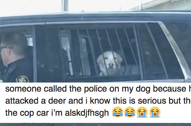 someone called the police on my dog because he ran away and attacked a deer and i know this is serious but the sight of him in the cop car i’m alskdjfhsgh 😂😂😭😭 https://t.co/czZqzzc3x3