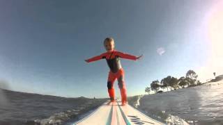He posted a video to YouTube showing Aviana riding her first wave like a total boss.