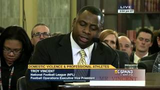 While speaking today in front of a U.S. Senate committee, Troy Vincent, the NFL's executive vice president of football operations, broke down while talking about his own childhood experiences witnessing domestic violence in his home.
