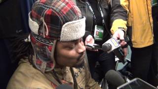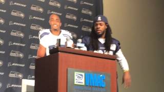 Today, Lynch's teammates Richard Sherman and Doug Baldwin (hididng behind a Doug Baldwin cardboard cutout) took the NFL to task for their senseless media policy.