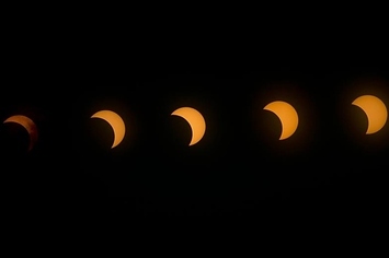 Veiled women observe a solar eclipse during an event organized by the Sudanese Society for Astronomy and Space Science on the banks of the Nile river in Khartoum, Sudan.