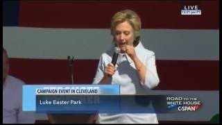 The speech in Cleveland was followed by Clinton's first interview with her traveling press corps on the same plane which she flies. During the interview on the plane, she also repeatedly coughed and stopped her talk to get water from a staffer.