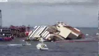 This is the first time such a massive cruise ship has been righted. The damaged Costa Concordia will now be towed away and scrapped.