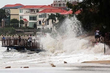 8.According to official Xinhua news agency, China's National Meteorological Center issued its highest alert, warning the typhoon would bring downpours to southern coastal areas.