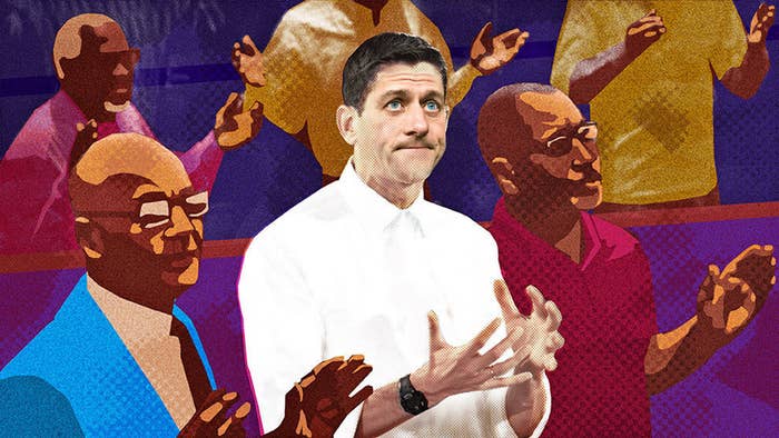 Ostensibly, the purpose of this meeting is to raise money for Woodson's Center for Neighborhood Enterprise, and to encourage local business owners to take a chance on Pastor Webster's band of prodigal sons. But the venue also provides Ryan with an ideal setting to pitch his Kempian vision for a Republican Party that champions America's marginalized, and he seizes the opportunity.