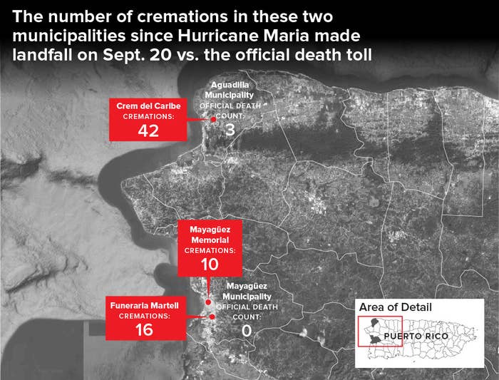 Last week, BuzzFeed News visited 10 funeral homes and crematoriums in two Puerto Rican municipalities on the territory’s western coast, Aguadilla and Mayagüez, at least two hours away from the bustling San Juan. The findings include: