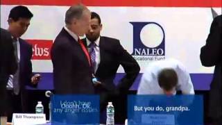 "But you do, grandpa." New York City mayoral candidate Anthony Weiner got into an angry confrontation with a 69-year-old rival Tuesday night at a Manhattan town hall forum.