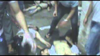 While another video allegedly shows activists tending to victims, many of whom appear to be dead.