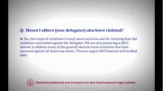 "Without this lawsuit, the pattern of abuse is guaranteed to get much worse, to the extend that the delegates who attend the national convention will be subjecting themselves to the risk of legal peril and Ron Paul will be guaranteed to lose the nomination without our legal intervention," Lawyers for Ron Paul write in an FAQ about the suit.