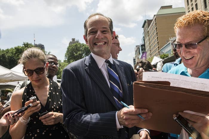 Although Spitzer's first public appearance Monday was billed as a signature drive, that was not at all the focus of the hour-long event: Only two volunteers appeared to be collecting signatures near the candidate's press gaggle, though a campaign spokesperson later called BuzzFeed to say that eight had in fact been at the event. Spitzer himself spent the afternoon talking to reporters, speaking individually to only seven or so voters — and leaving in a taxi with about that many signatures on his own petition sheet.