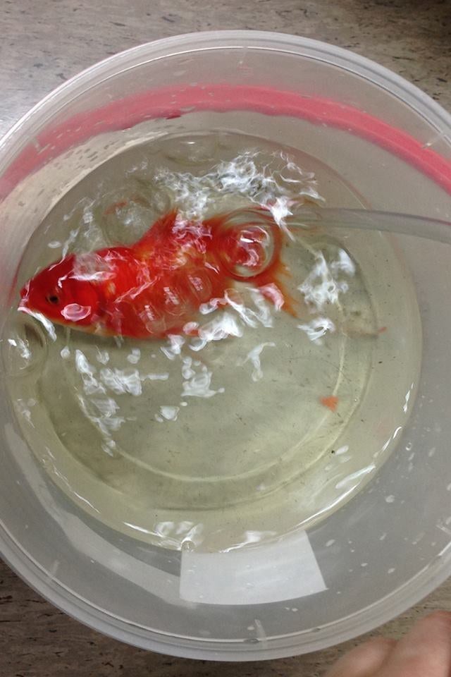 When the operation was done, they put George in a bucket of normal water. He was given painkillers and antibiotics, and after a few minutes he started swimming around, good as new.