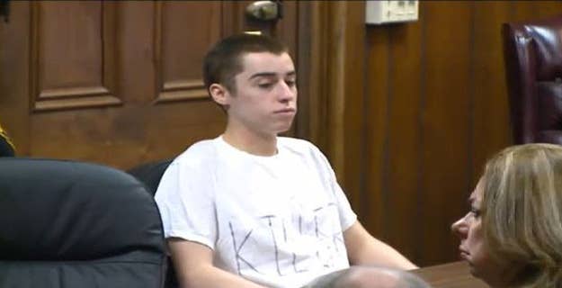 T.J. Lane came to court today wearing a handmade "killer" T-shirt.