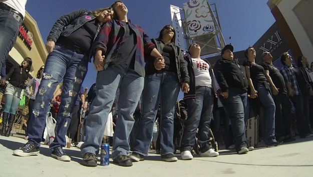 Daniel Chesmore, 21, and Jose Guzman, 24, were told by a security guard at Roseville Galleria in Sacramento that if they didn't stop kissing and holding hands, they'd be asked to leave the mall.