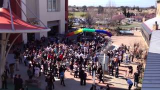 Protesters gathered at the Roseville Galleria in Sacramento, California on Saturday to show support for the gay couple kicked out by mall security for kissing and holding hands.