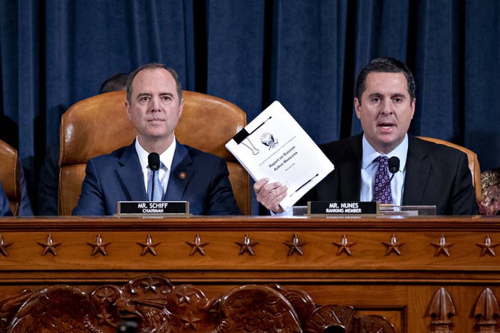 Reps. Adam Schiff (left) and Devin Nunes during an impeachment inquiry hearing on Capitol Hill, Nov. 21.