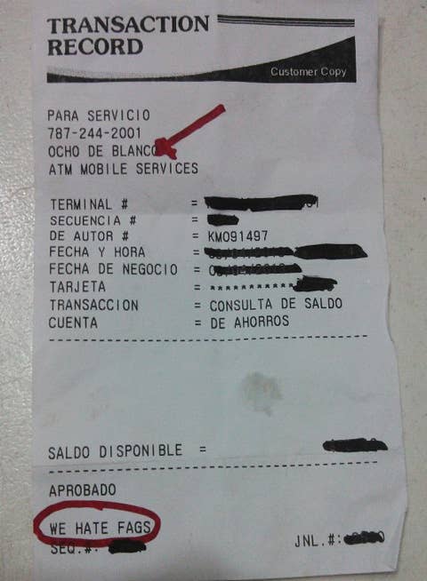 Ocho De Blanco posted a message on their Facebook page saying that they had been in contact with ATM Mobile Services, the company that owns the ATM, demanding an explanation. Ocho De Blanco also apologized for the hate speech appearing on the receipt and have since shut down the machine.