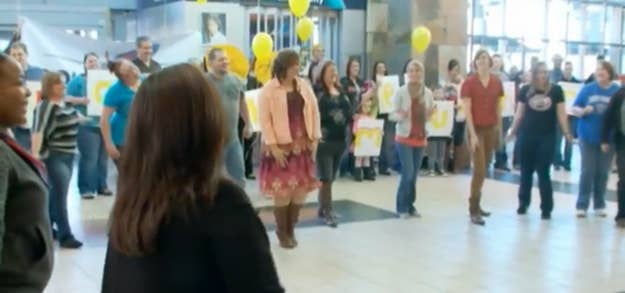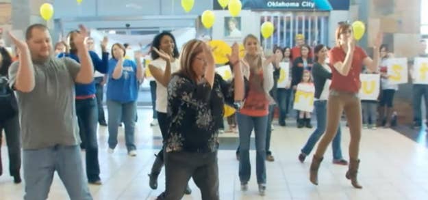 Brittany and her crowd of dancers surprised her boyfriend Austin at Oklahoma City's Will Rogers World Airport.
