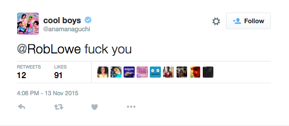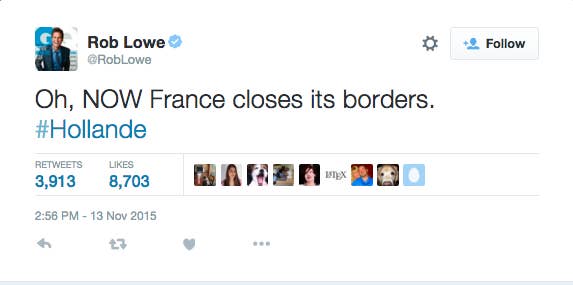 Actor Rob Lowe is not everyone's favorite person on Twitter right now after posting some of his thoughts on the attacks in Paris.