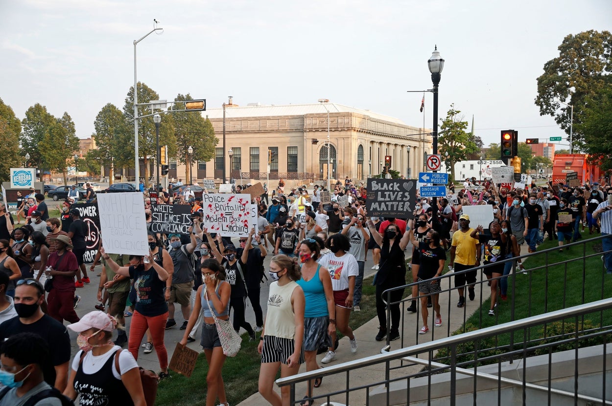 Demonstrators marched through the city followed by dozens of cars, chanting "no justice, no peace," and shouting Blake's name.