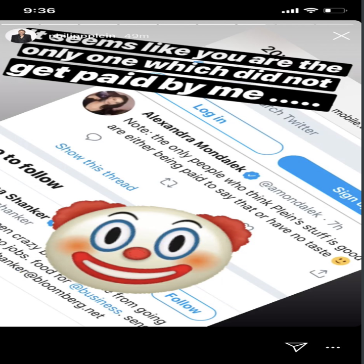 She decided to post the screenshots on Twitter, even though she was tempted to bury her hurt and make it go away, because she thought Plein deserved to be called out.